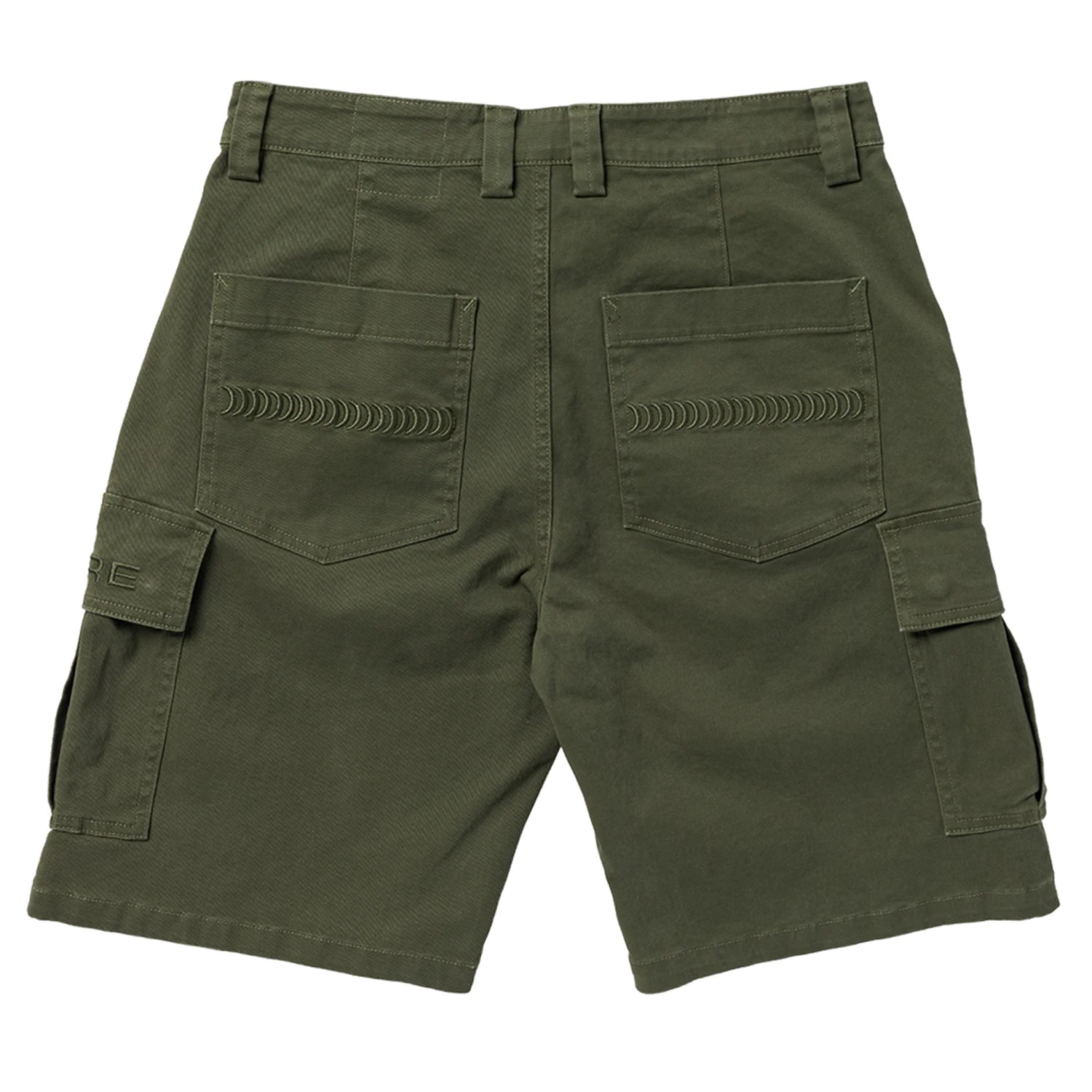 Cargo shorts with a loose fit and custom Spitfire branding on front right pocket and custom swirls graphics on back pockets.
