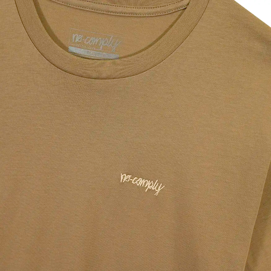 No-Comply Script Embroidered Tee Shirt - Khaki