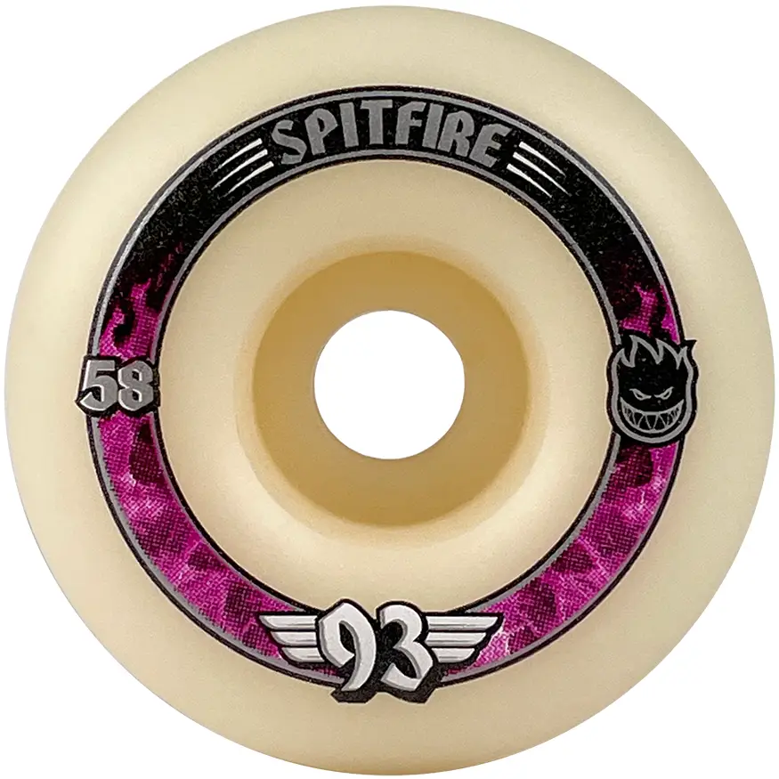 Spitfire's all-new 93a durometer wheel combines a soft duro with a high rebound compound that absorbs more impact & vibrations and provides controllable smooth slide & reliable grip. The unmatched Formula Four flatspot resistance holds speed over any surface.