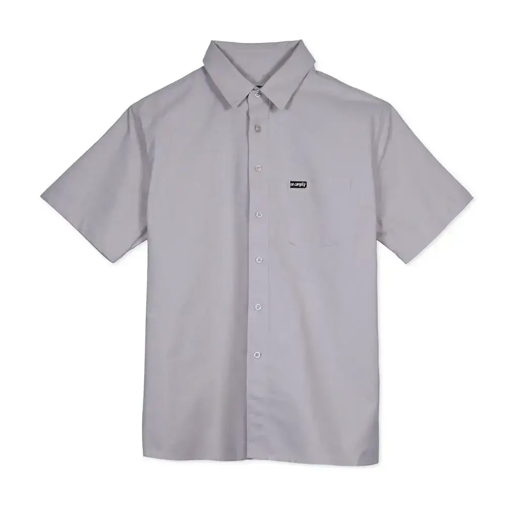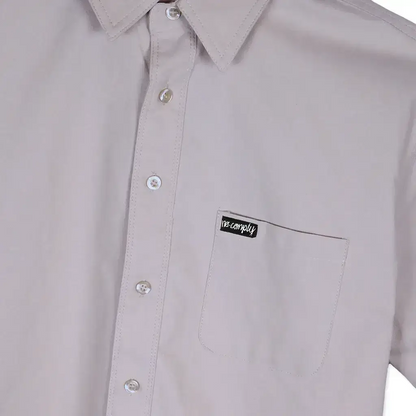 The No-Comply Townes short sleeve button up woven shirt features a single pocket front featuring No-Comply script label.